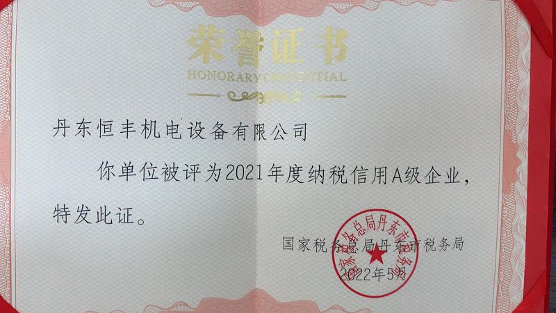 二十大勝利閉幕之際,丹東恒豐喜獲“納稅信用A級(jí)企業(yè)”稱(chēng)號(hào)。感謝國(guó)家稅務(wù)局對(duì)我司納稅工作的認(rèn)可!2023年我們將一如既往依法納稅,再創(chuàng)輝煌!